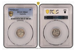 *SCARCE IN THIS GRADE!!* Australia 1924 Threepence PCGS – MS63 Nice Uncirculated