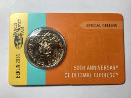 2016 Fifty Cent Decimal Currency 50th Anniversary Gold Plated (50c) Uncirculated Australian Decimal Coin – World Money Fair – Berlin Coin Show Issue
