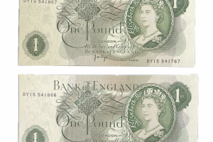 Great Britain 1970-78 2 x 1 Pound consecutive error pair – Uncirculated