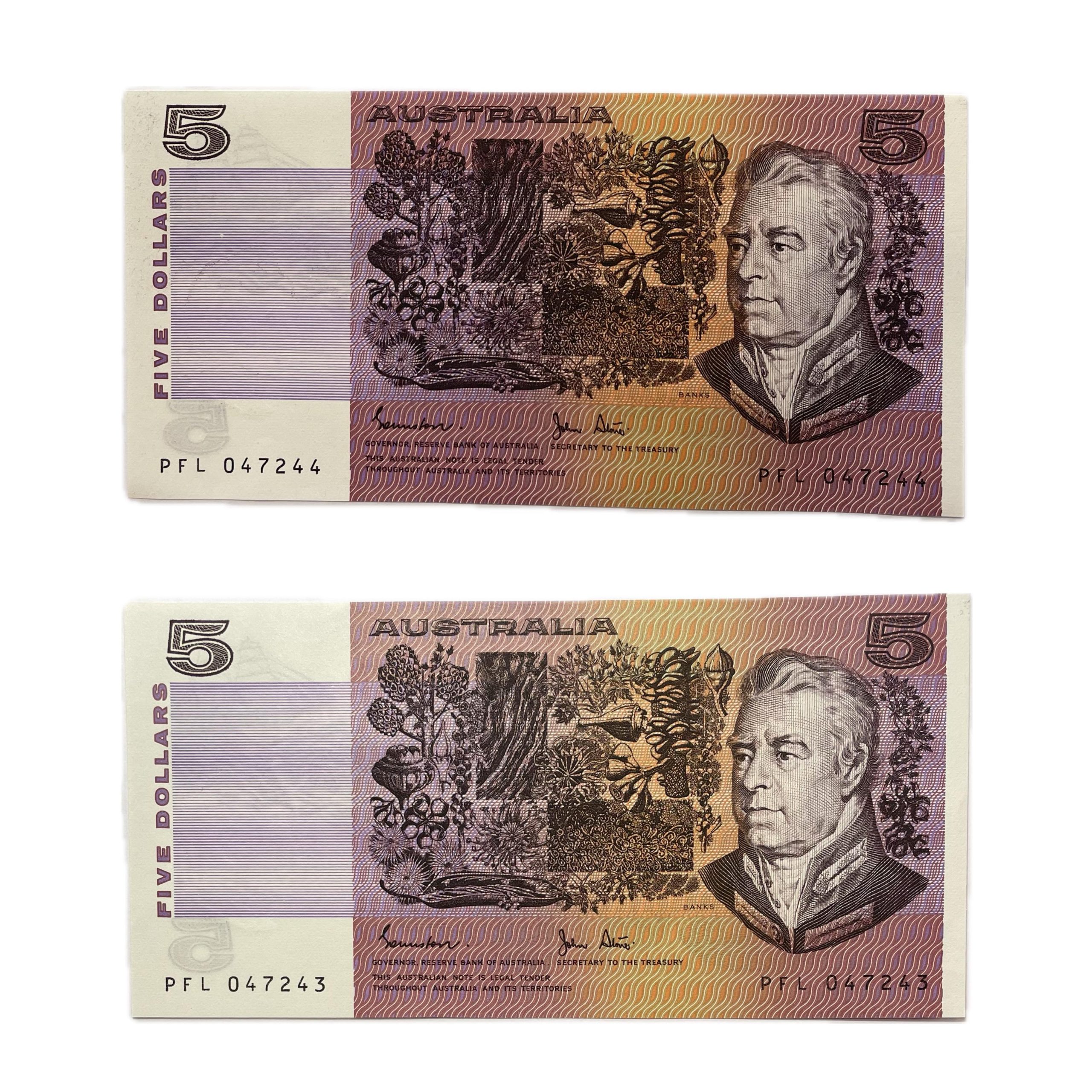 1979 $5 Johnston Stone Consecutive pair – Uncirculated