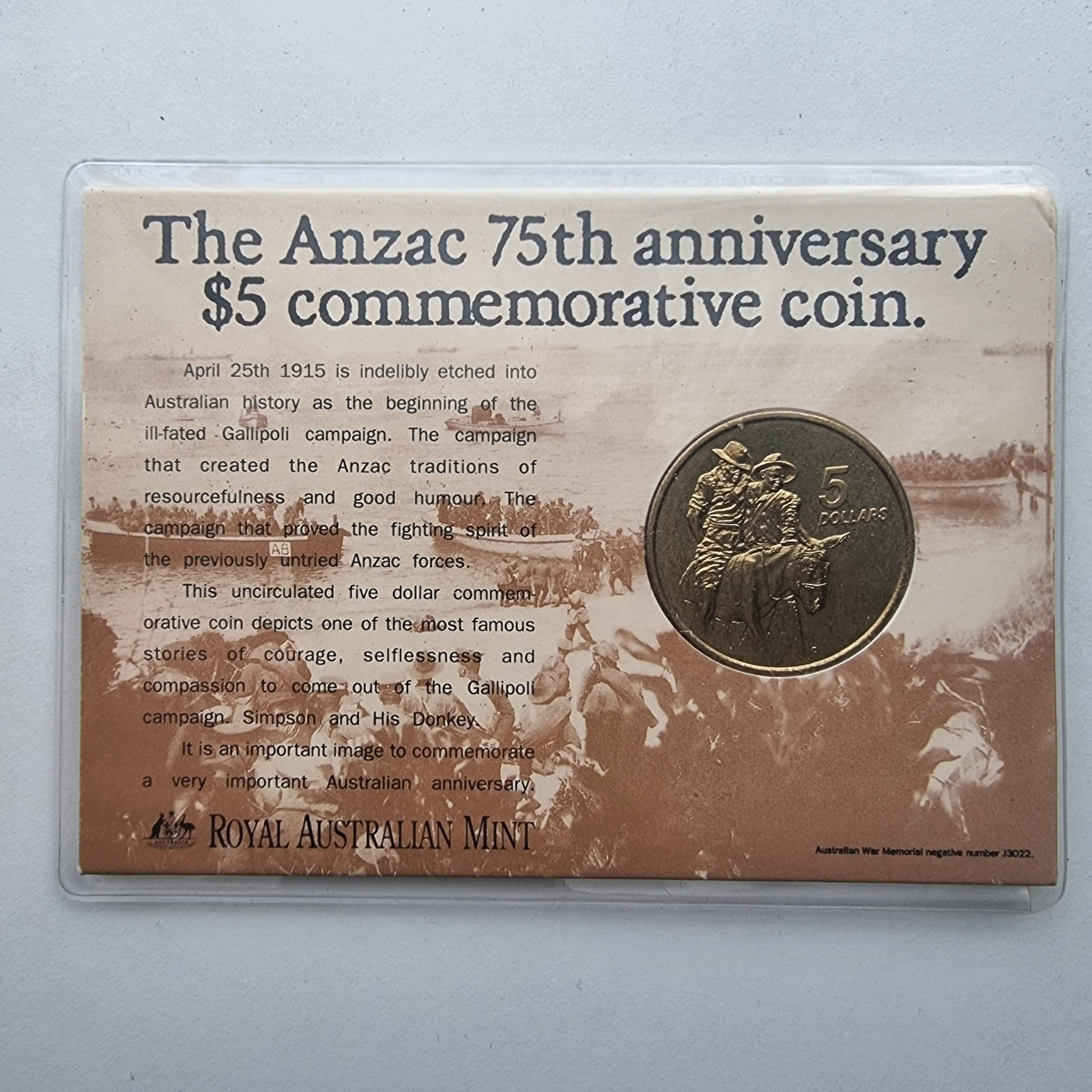 1990 $5 Anzac 75th Anniversary Uncirculated Coin