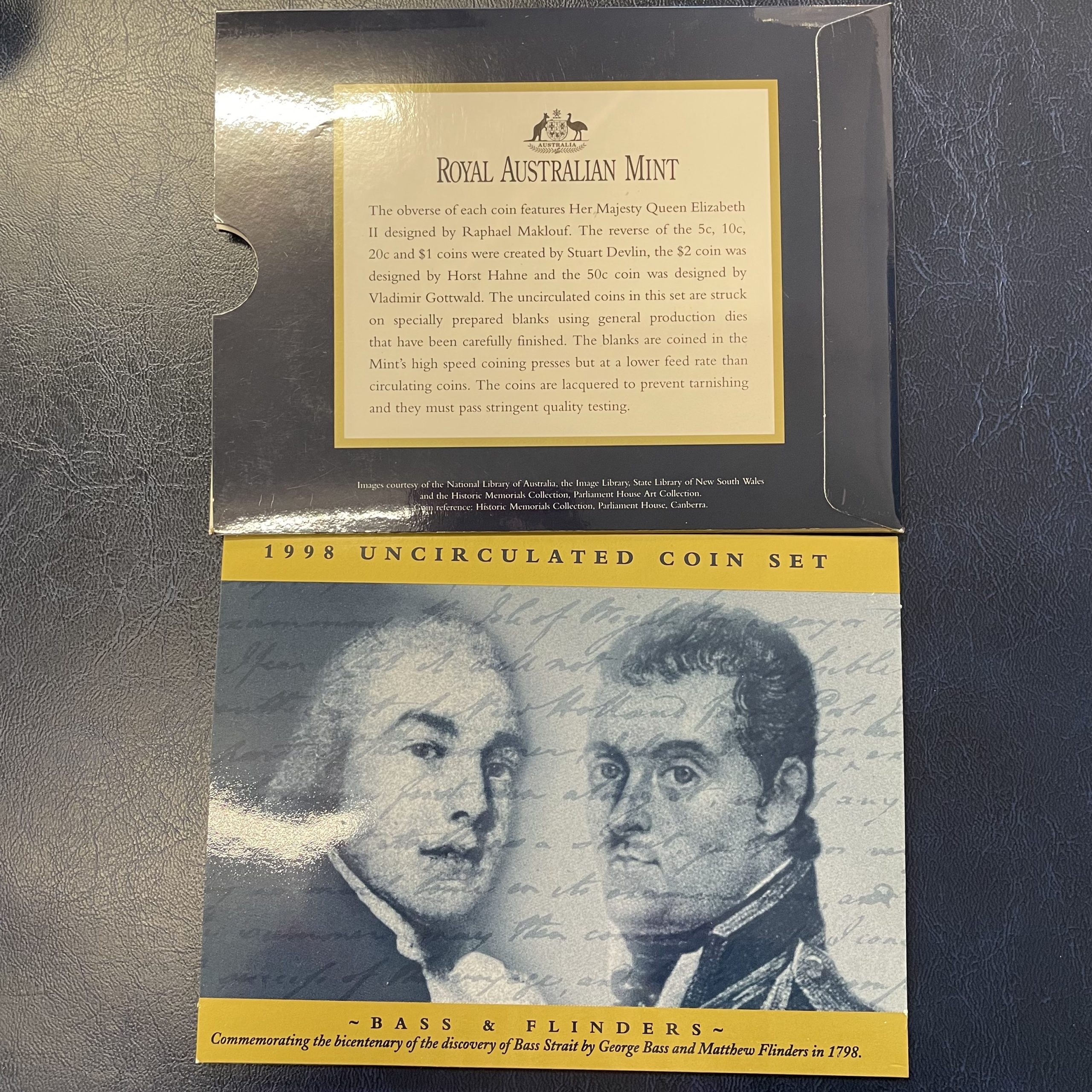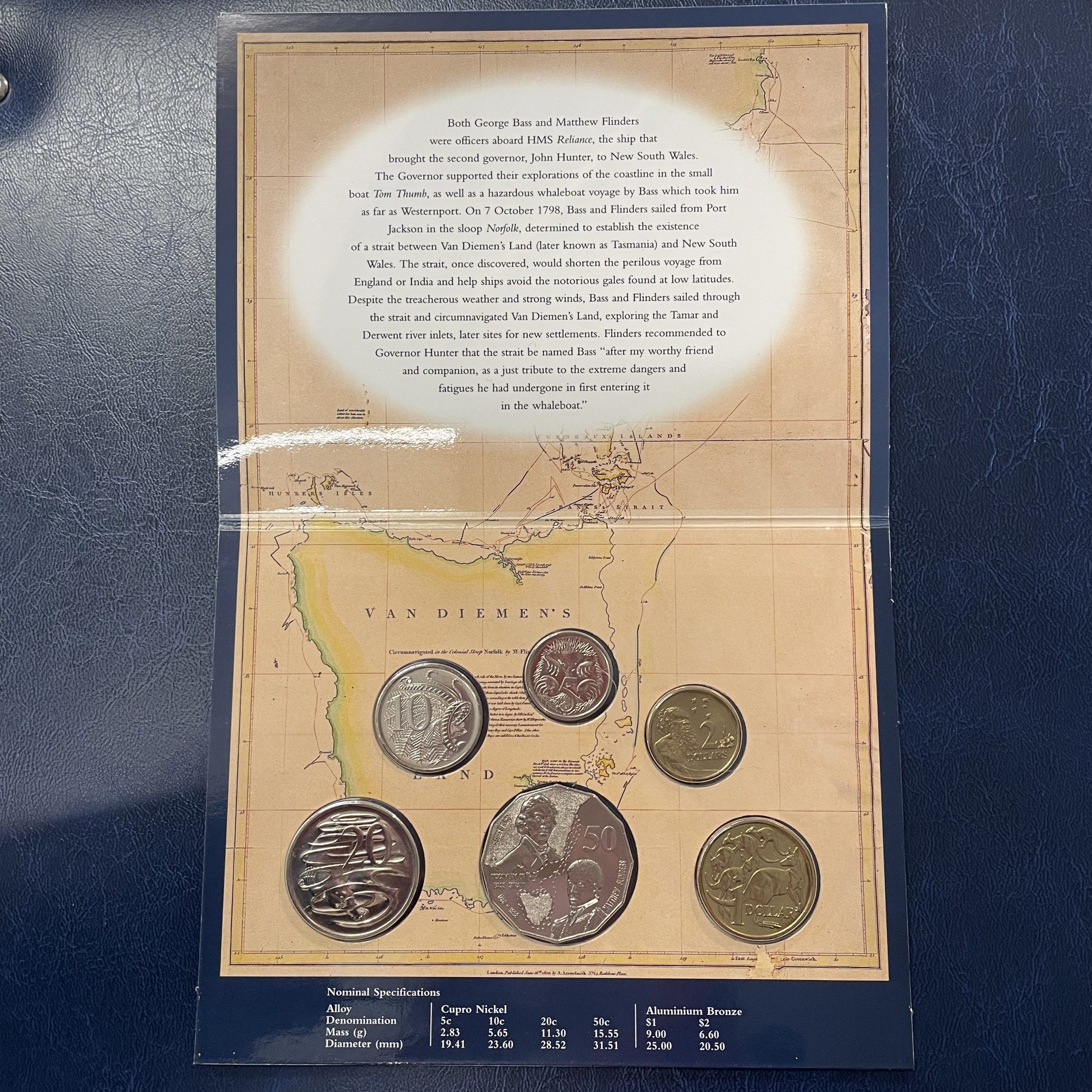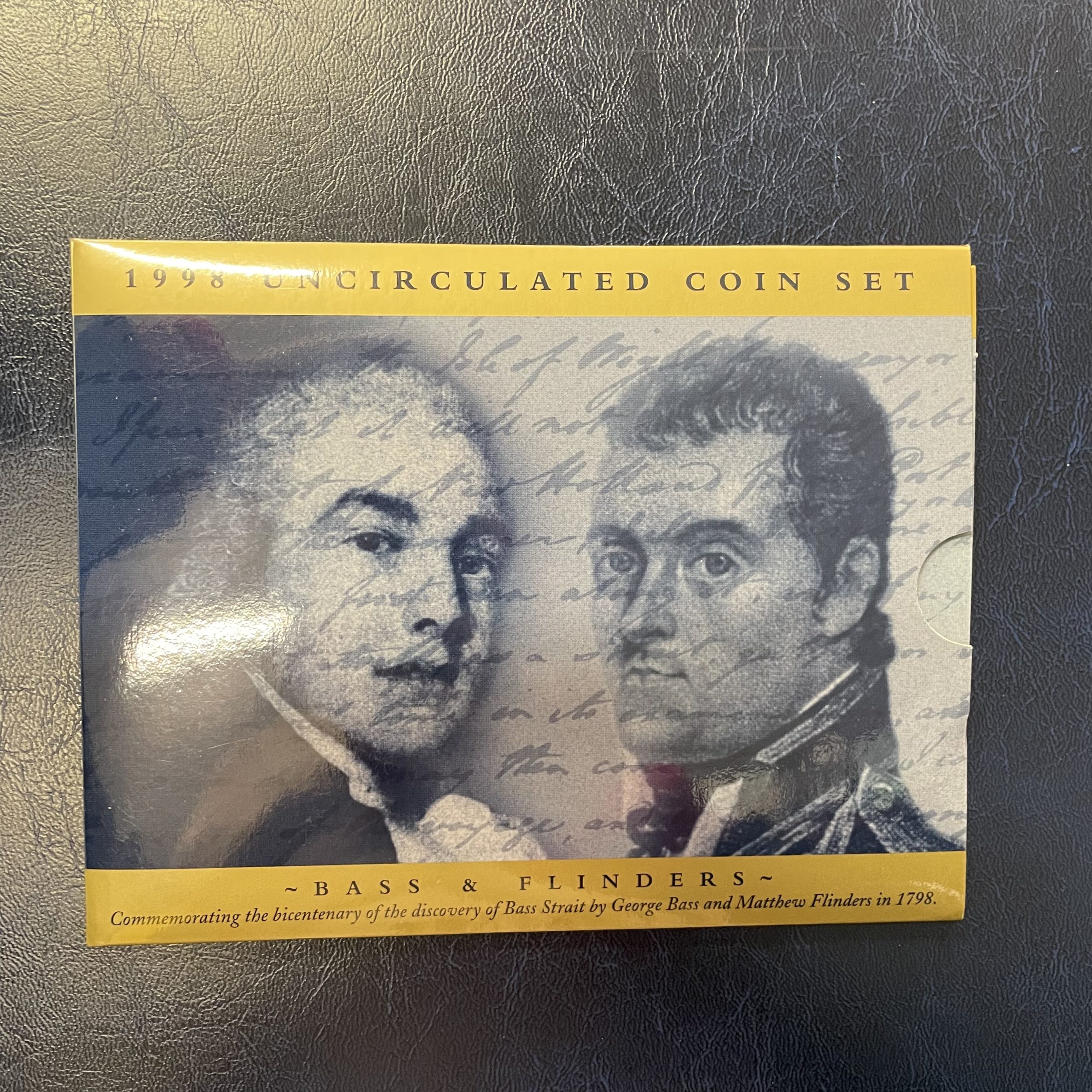 The 1998 6 coin mint set commemorates the bicentenary of the discovery of Bass Strait by George Bass and Matthew Flinders in 1798. This set features a special edition 50c designed by Vladimir Gottwald.