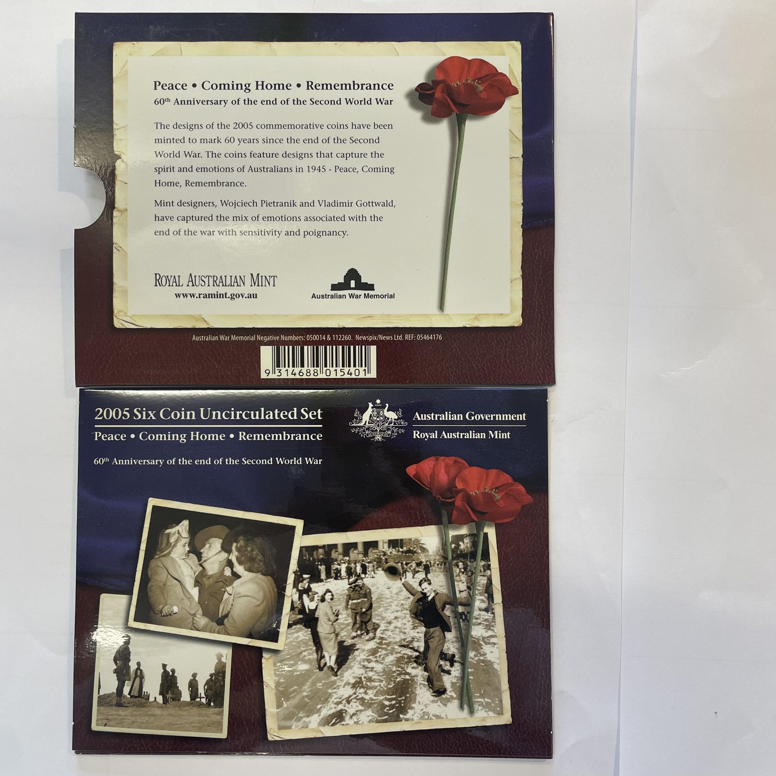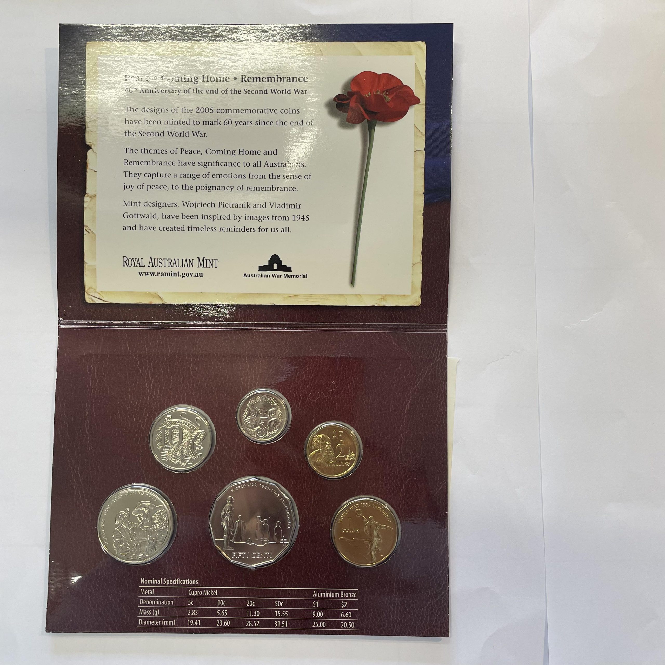 2005 60th Anniversary of the end of the Second World War ‘Peace . Coming home . Remembrance’ 6-coin Mint Set