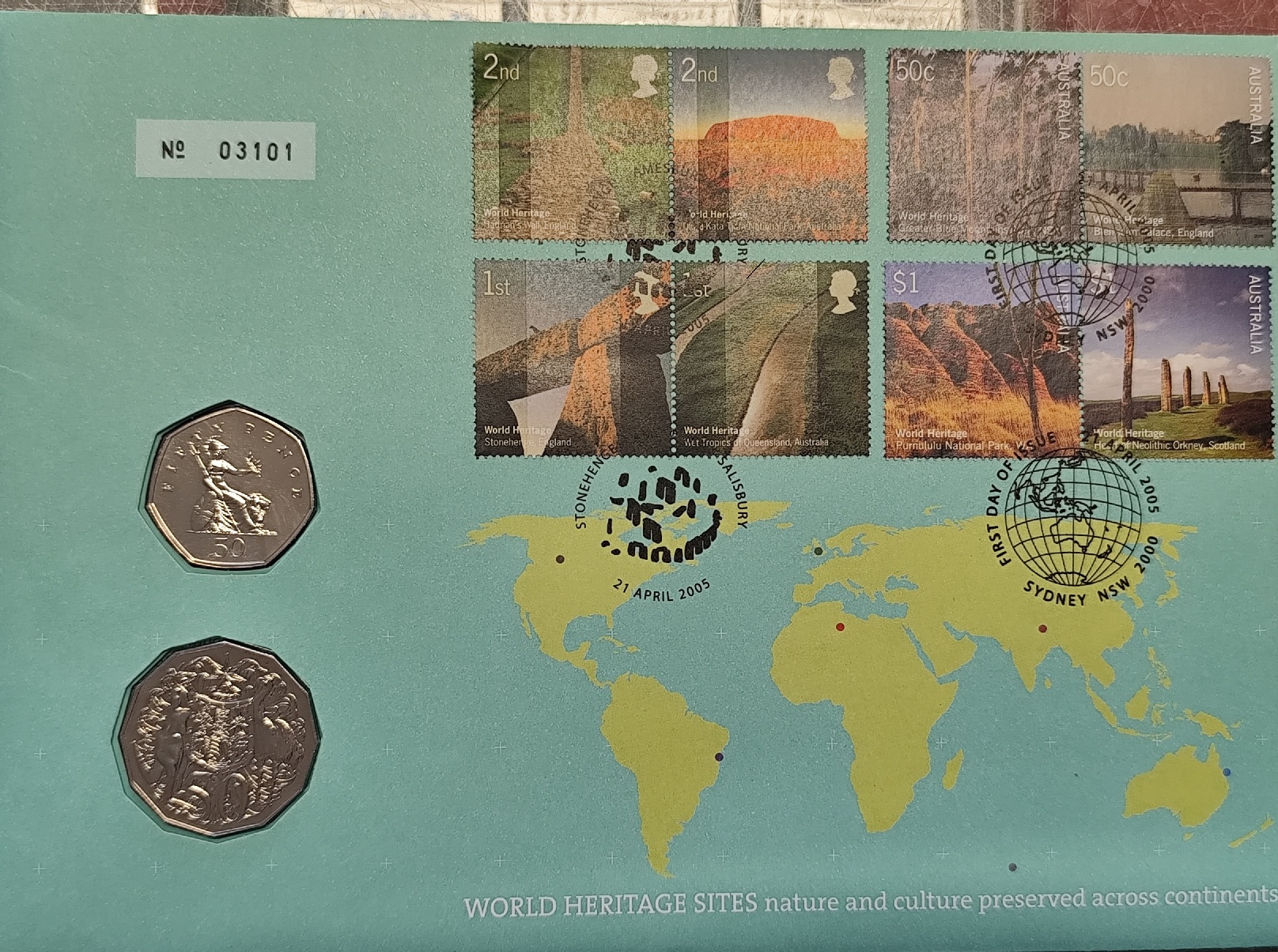 2005 PNC 2 coin set 50 Pence UK and 50 Cent Australia – World Heritage Sites
