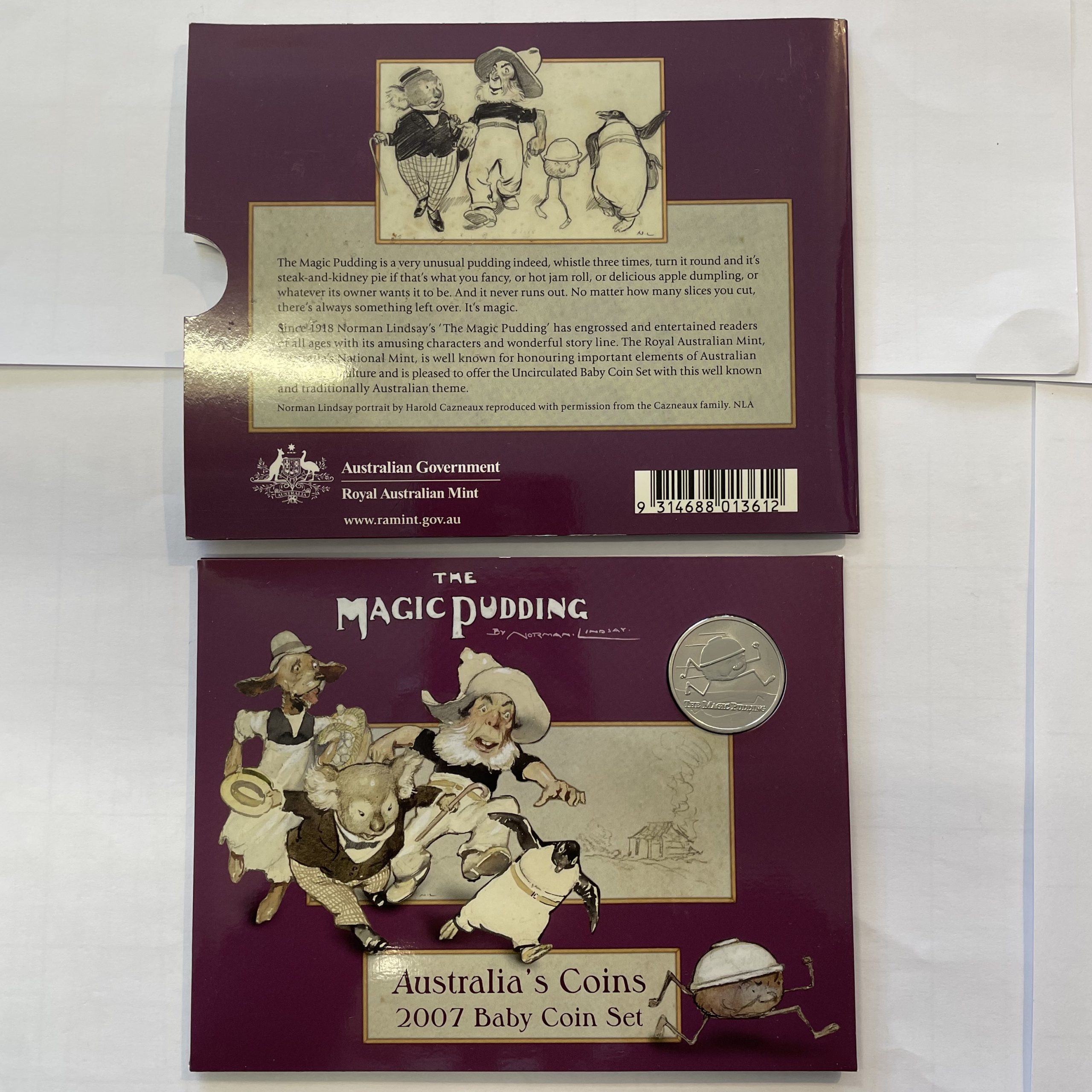 The 2007 baby mint set features an unique dollar coin. This set also celebrates Norman Lindsay’s ‘The Magic Pudding’ which has been entertaining readers of all ages since 1918. A nostalgic addition to your coin collection.