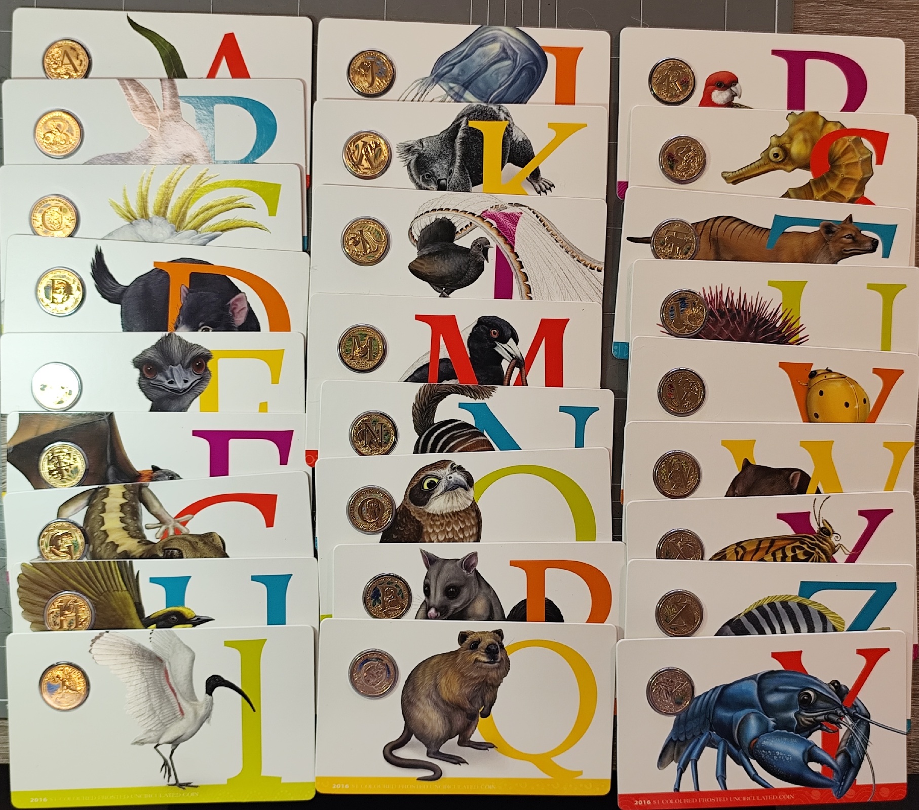 2016 Aussie Alphabet Coloured $1 coin Collection of 26 coins, one for each letter from A to Z coin