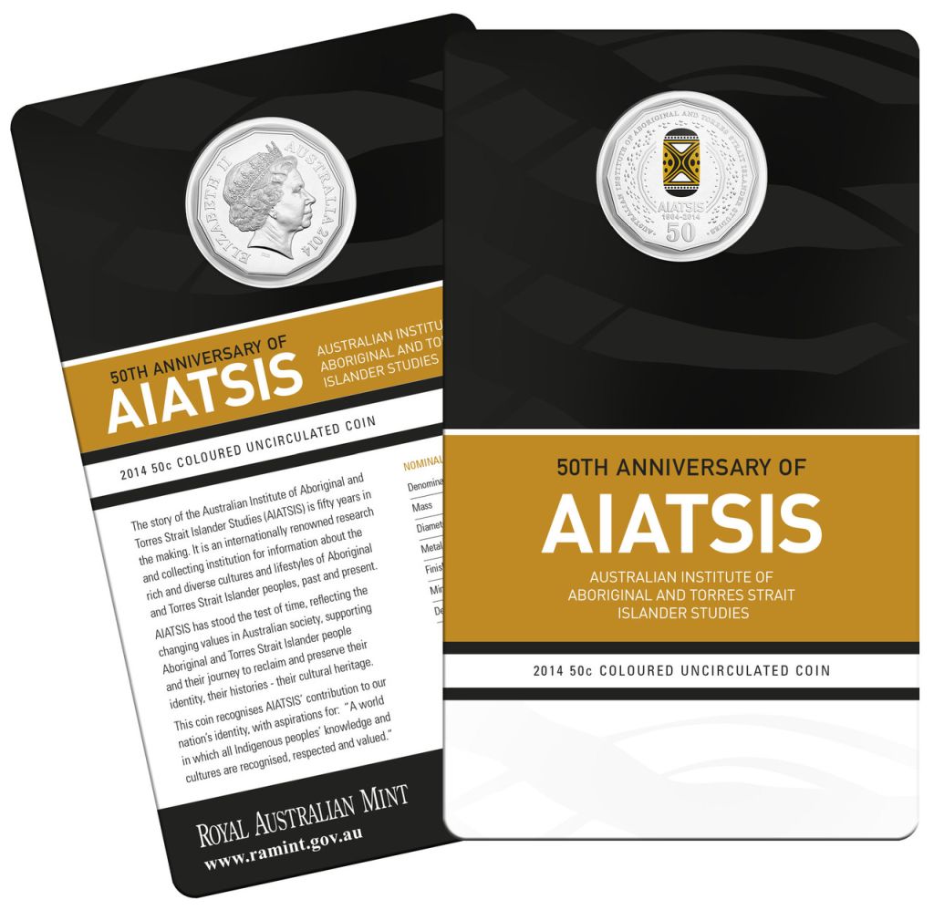 Australia 2014 50th Anniversary of AIATSIS Coloured 50 Cent Uncirculated Coin in Card
