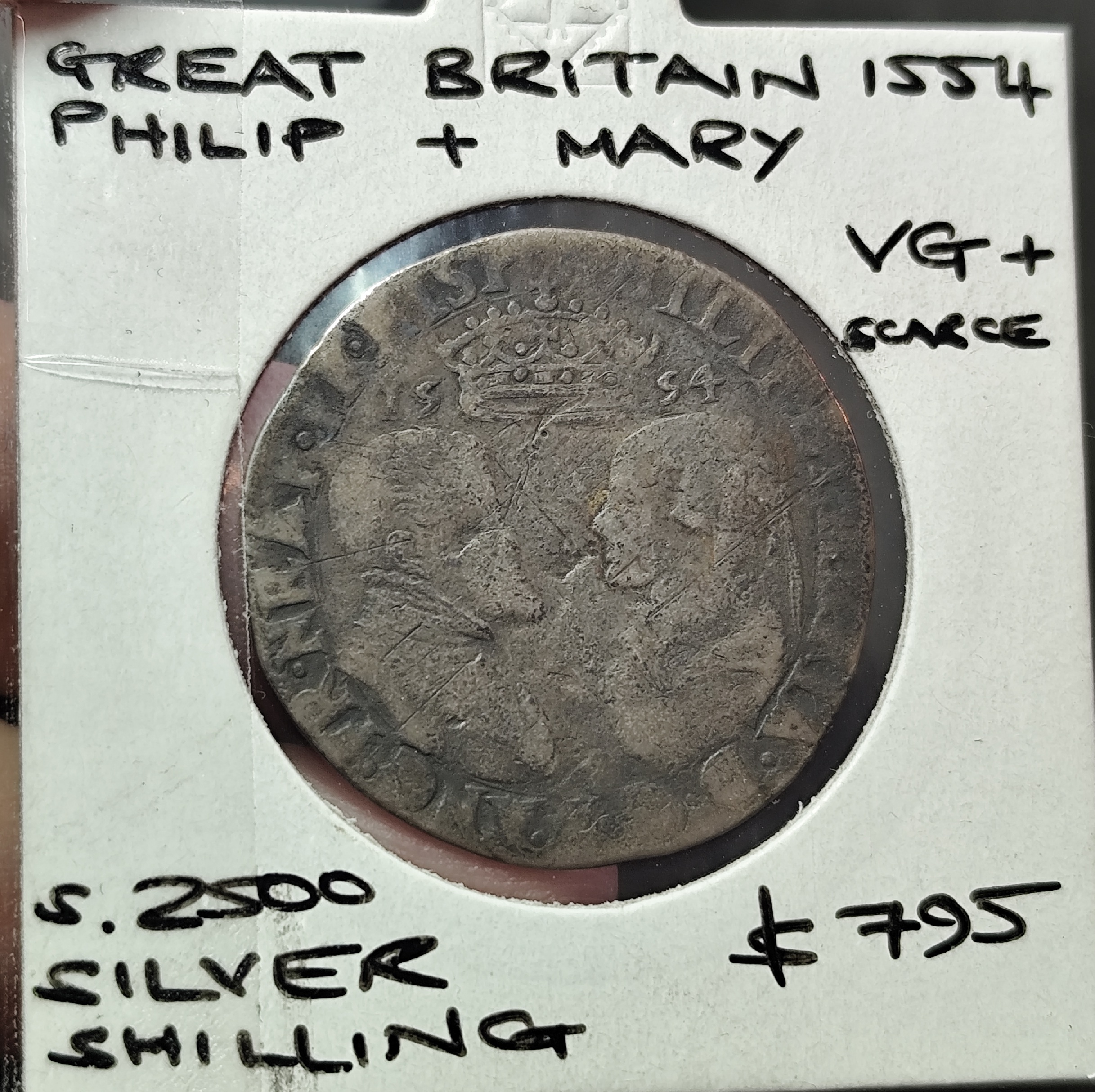 UK England 1554 Shilling Philip and Mary VG Scarce